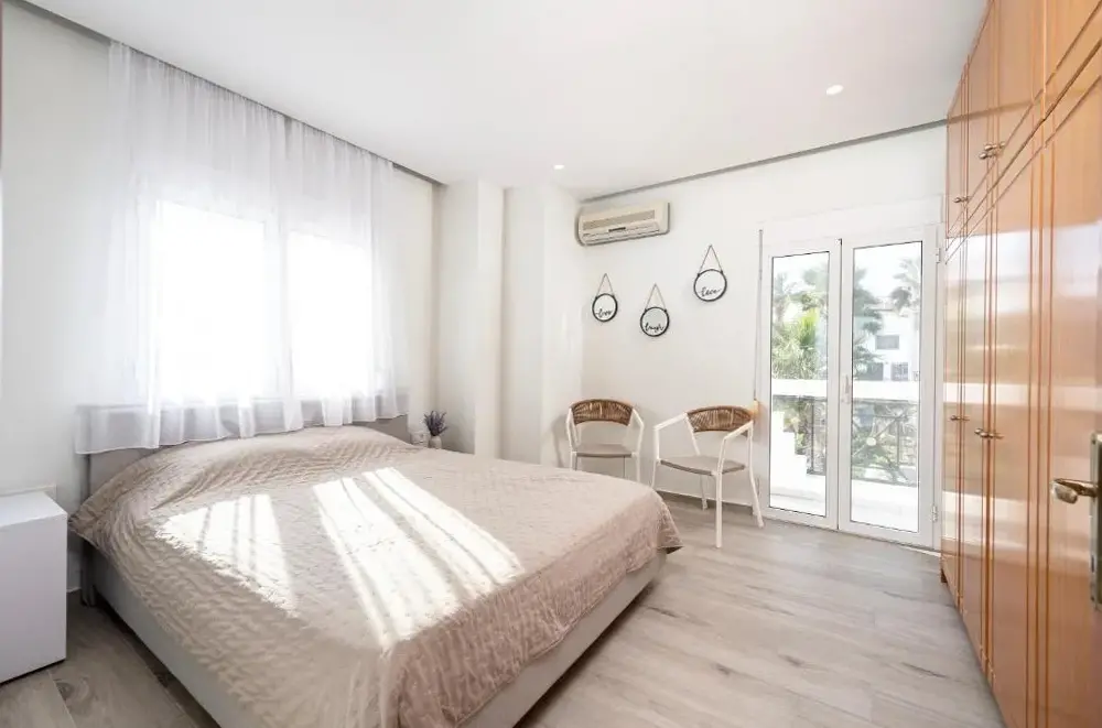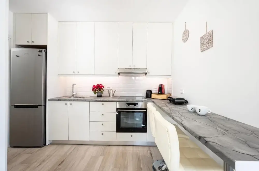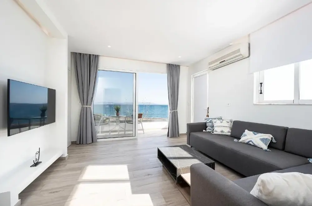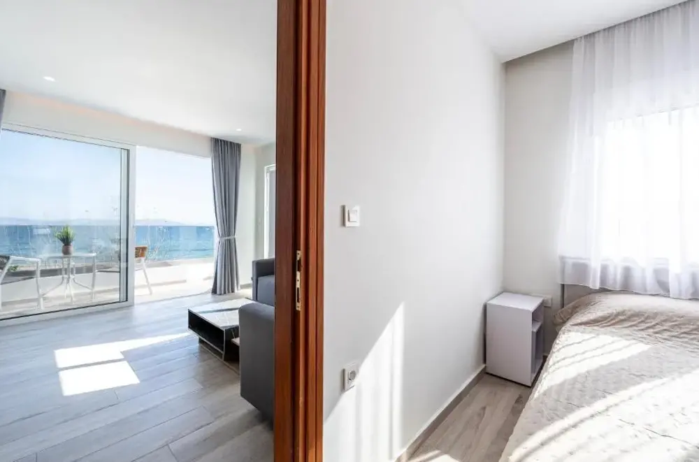 We loved the view from this apartment could see everywhere with wrap round balcony. Sun caught front balcony in morning then in afternoon side balcony. We booked this for relaxing and close proximity to Kos old town (5-10 minute walk) and restaurants and shops nearby. We cannot wait to return here. The owner allowed us a late check out and was a godsend!